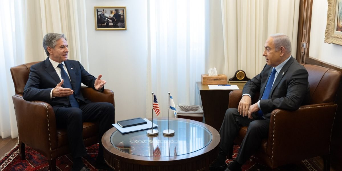 Anthony Blinken está em Israel realizando uma série de encontros com o Primeiro Ministro, ministros do Gabinete de Guerra e o Presidente de Israel, Itzhak Herzog.